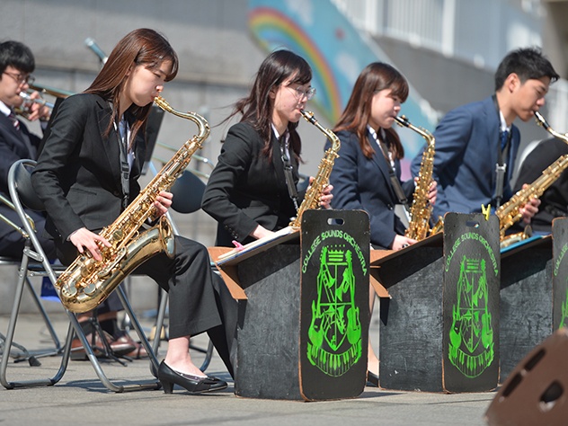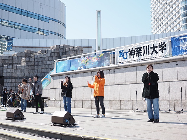 パシフィコ横浜 国際交流ゾーン 円形広場「プラザ」では、課外活動団体による新入生歓迎イベントが開催されました。